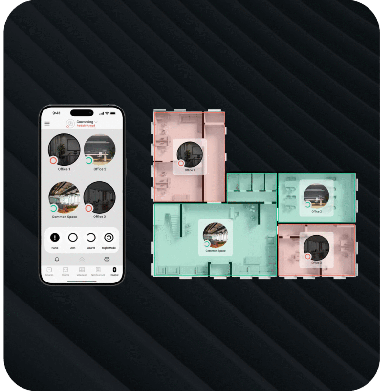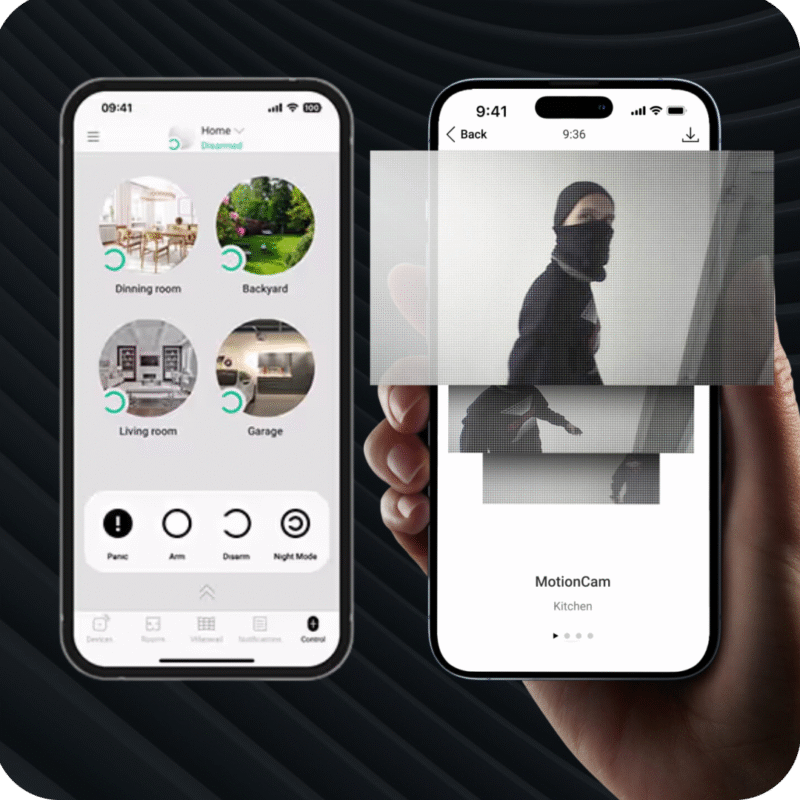 Smarta sensorer reagerar direkt på rörelse, rök, värme, glaskross eller vibrationer. Systemet fångar upp och identifierar avvikelser i ett tidigt skede och larmar innan en situation hinner utvecklas.